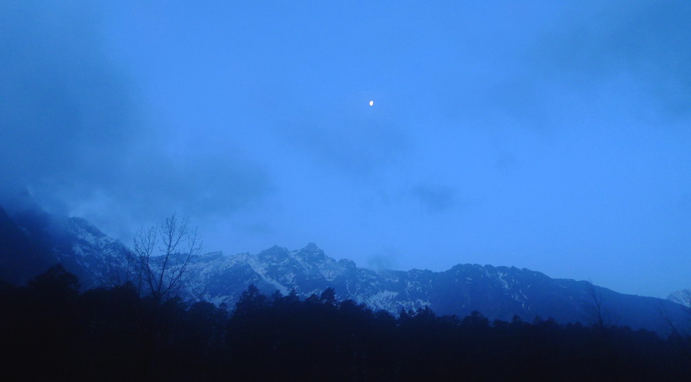 约莫1730离开,吃了坑爹的晚饭,时间尚早,在亚丁村买了牌留下高反严重的领队,叫上多吉师傅四个人开始打牌消磨时光。