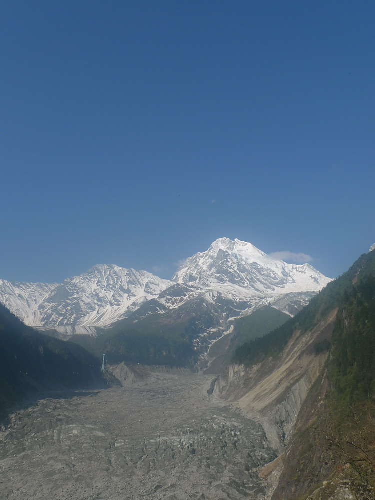 (下面那一大片灰色的就是冰川了,基本都被石头覆盖了,要走下去才有人为开凿出来的冰洞给你看。包括坐缆车上去的冰瀑也是一样的,基本也是灰色的。)