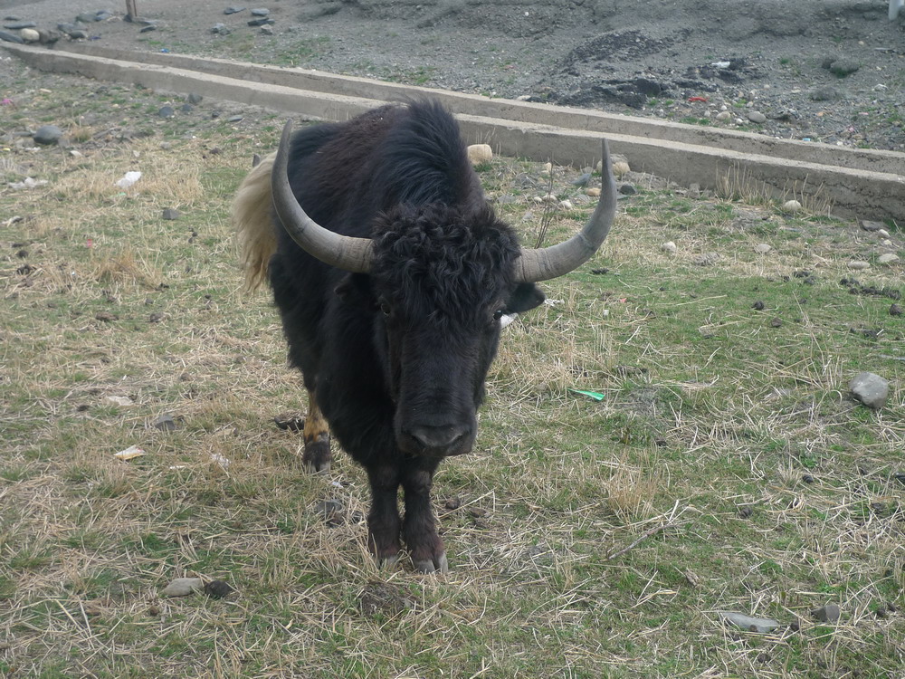 去新都桥路上的一个观景台下面的牦牛,很乖,相比之后一路上的都乖多了,可能是在这里见的人也多吧,笑~ 这么说是因为他让我摸他的头!就是额头上的那簇卷毛~ XDDD 还停着让我拍~ 这一路上遇到很多卖虫草的,多吉师傅让我们都不要买。