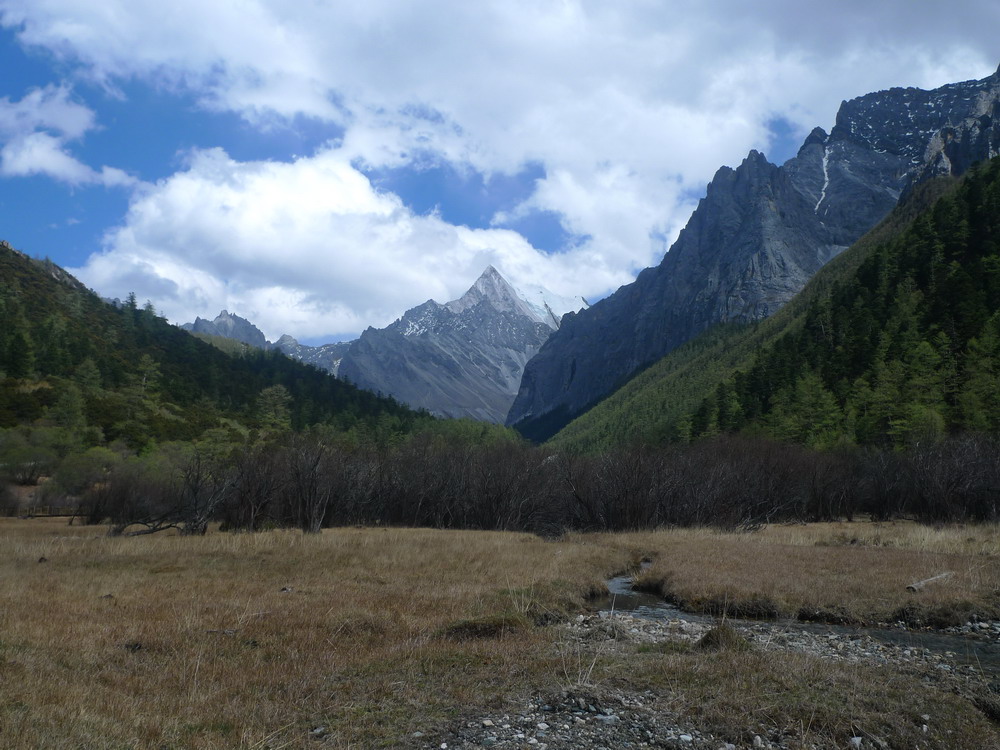 洛绒牛场 以及 左上方云雾缭绕间的央迈勇