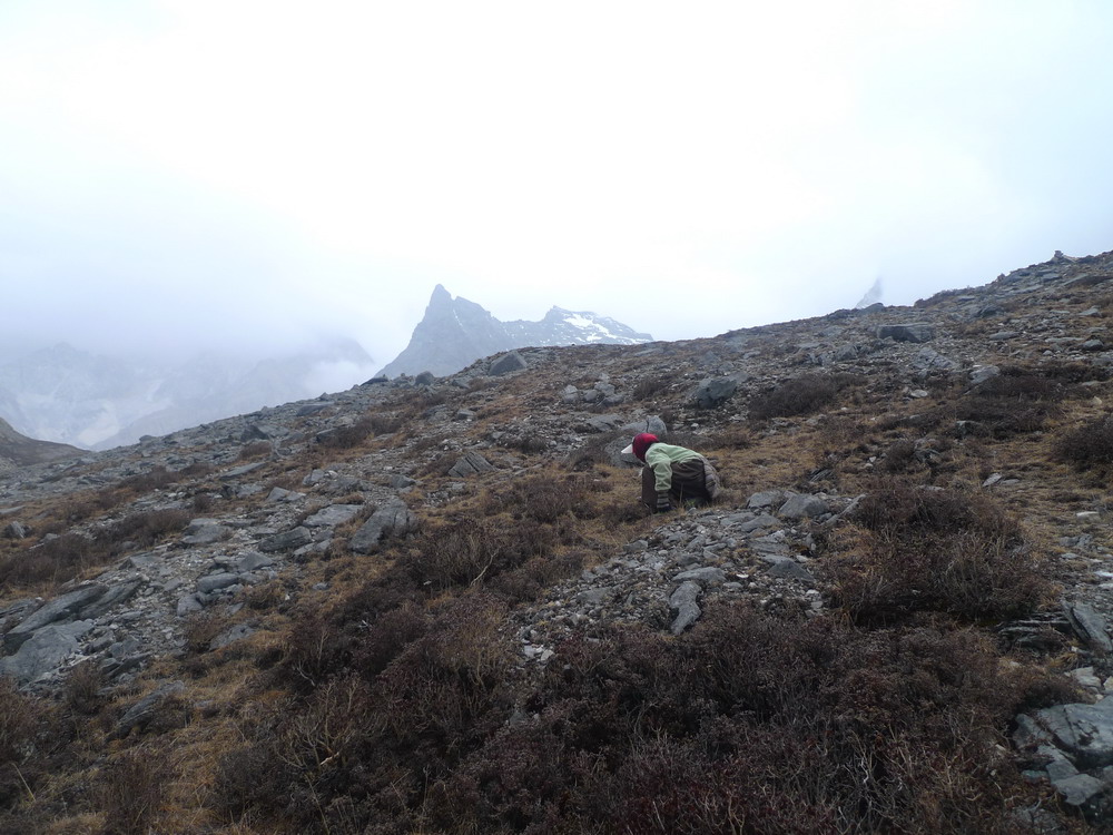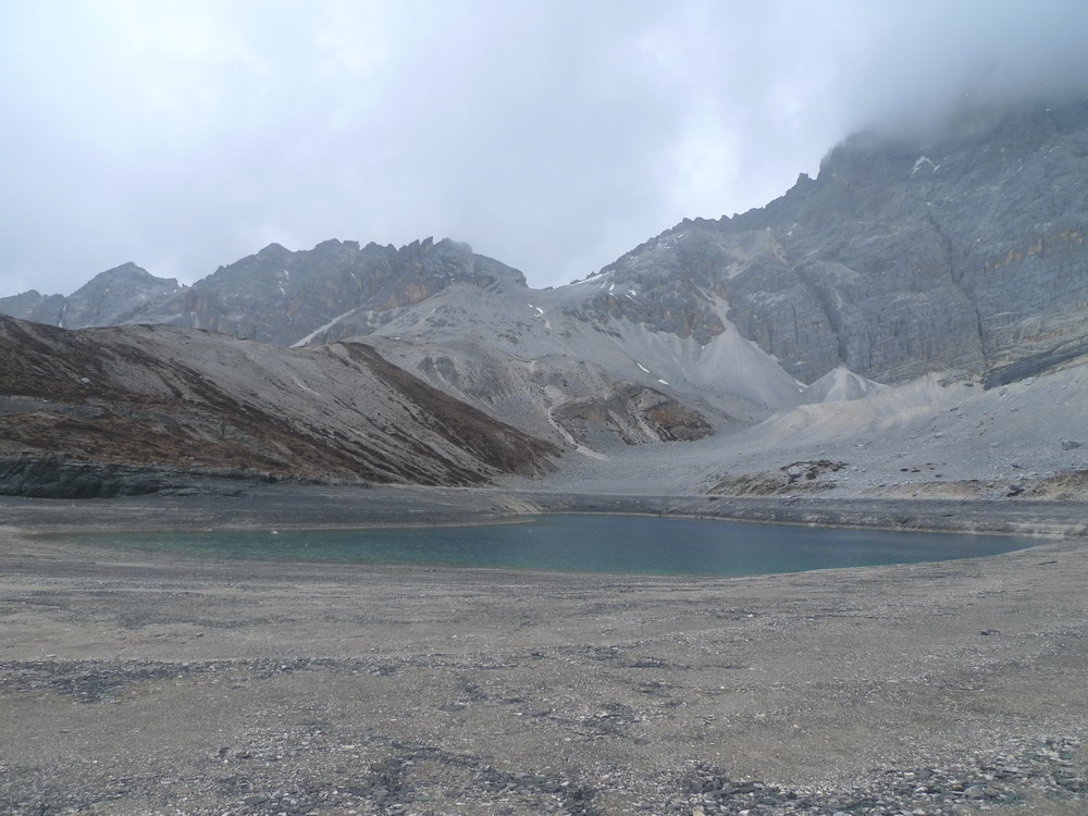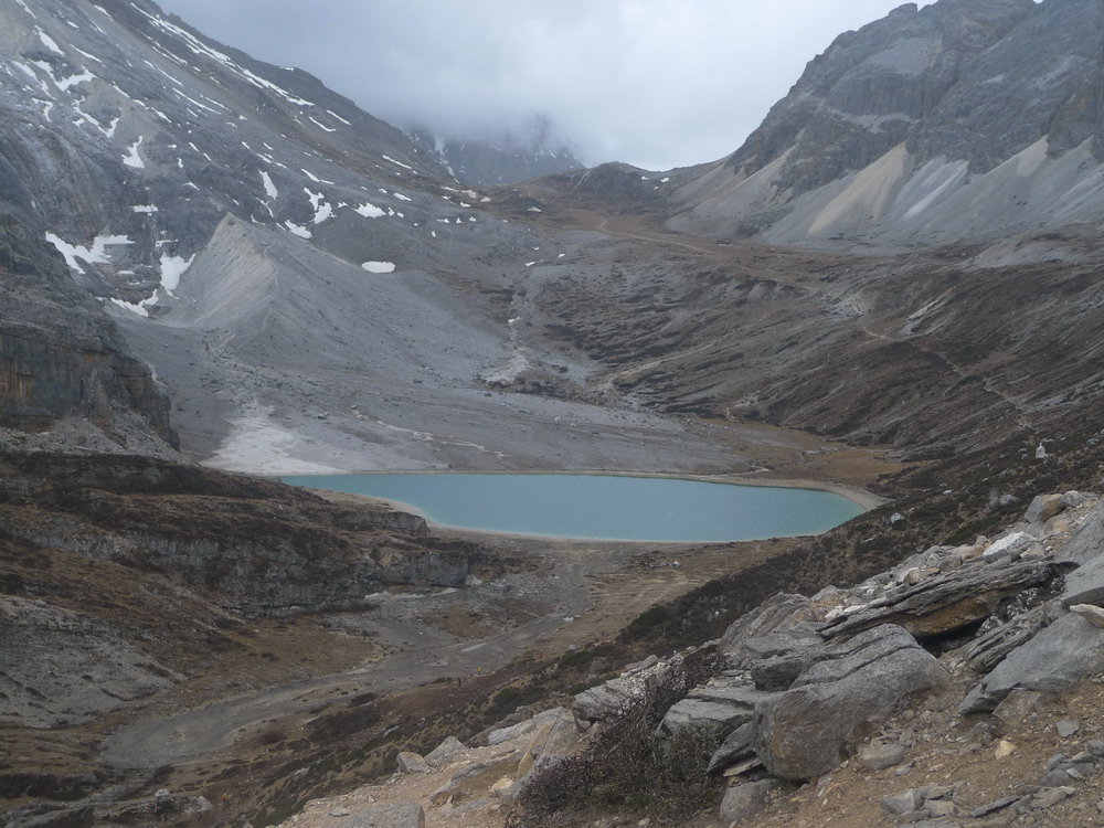 闲话不多表,这个时候天色顿时起了变化,感觉到雪子和冰雹打在脸上,于是赶紧从湖边折返开始下山。忘尘同另一位男士七点已经下山了,剩下拍照的领队和我,于是我们就从另一边沿着藏民的足迹摸索着下山。