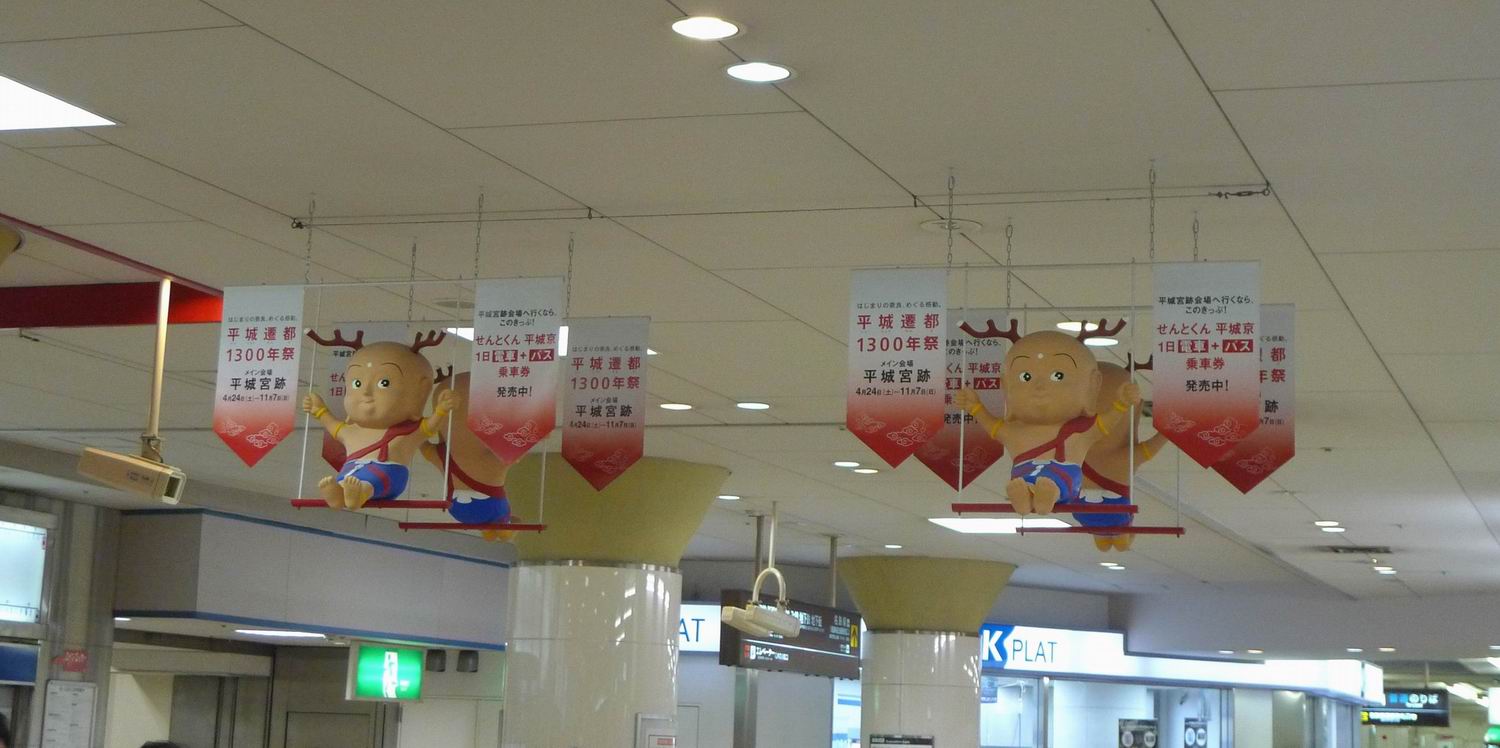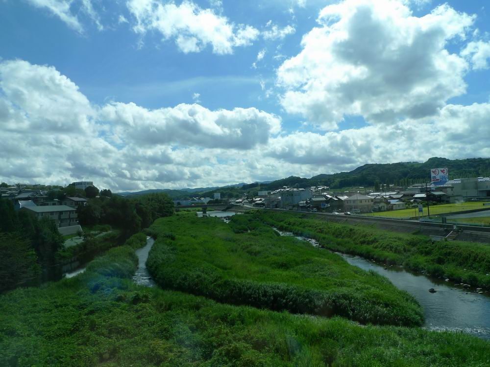 名铁从空港到金山是一条线路无需换乘,等待我们的是一辆比卡丘电影主题的列车!开心地拍了两张~不过无知的我们一开始坐在了指定席位,等到列车员来检票的时候才知道(。。。),就拖着箱子到前面普通席位,还好时间不长就站着了,顺便沿路观光。