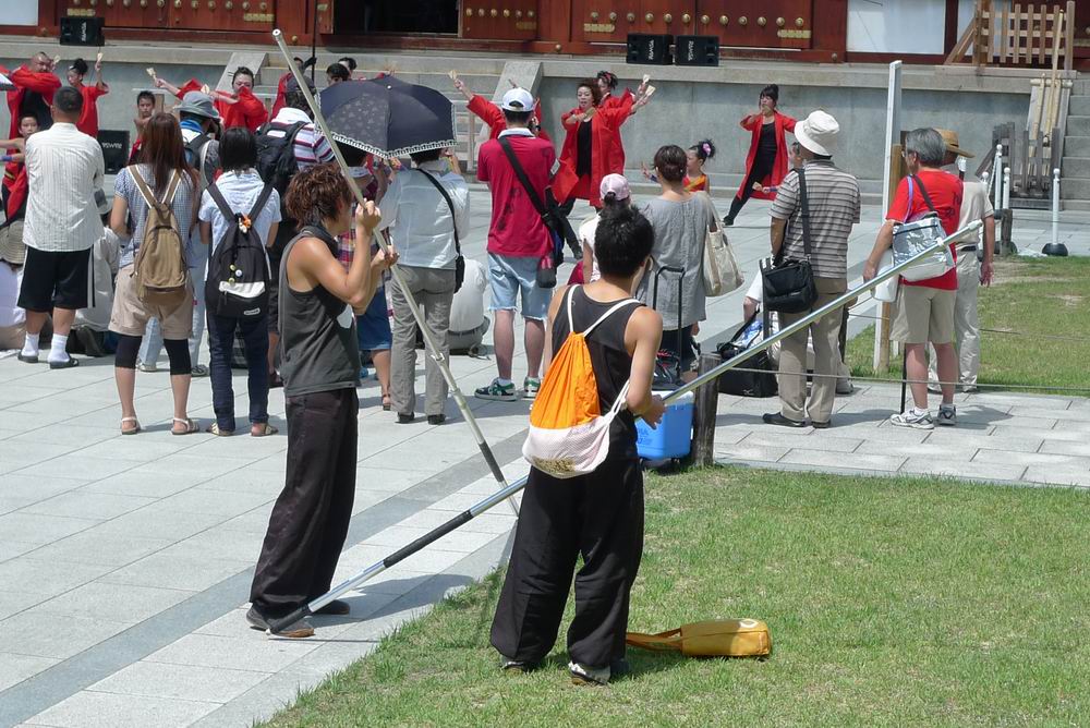 同样很有爱的一队击鼓表演,灰常有激情!看着就觉得大鼓好重的但是在他们的敲击下便感觉如同舞动的肢体的一部分那样,矫健而有力!带头的小哥也很有喜感~