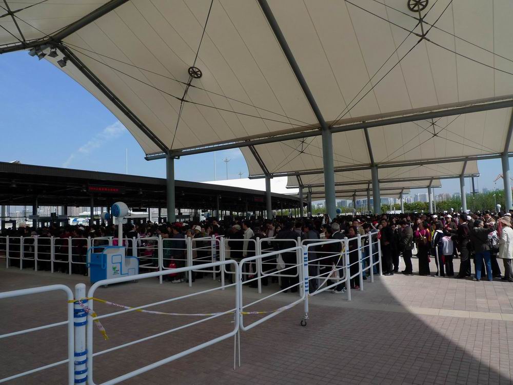 出来之后走水路去浦西,本来想去很有钱的通用馆(就是那个通用 GM),没想到也要排队。。。估计会送东西的馆都要排队。。。嗯。浦西人还是少的,逛了一圈稍作休息,决定折回去看欧洲馆还有没有很多人排队。在此要说,目前还没开放的日本企业馆据说很不错,看到XQ上有GL说会有吉卜力的东西,耶~ 我觉得船舶馆和航天馆应该也能看看,不知道那些案例馆里面会有些什么,有待研究。