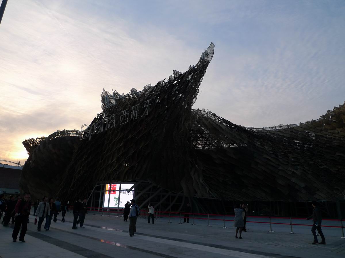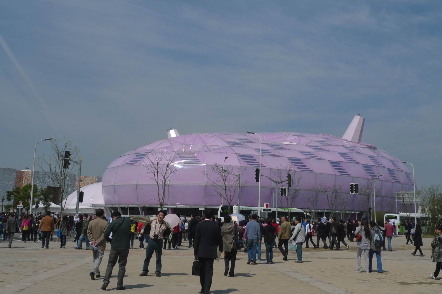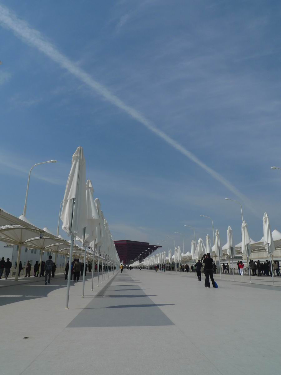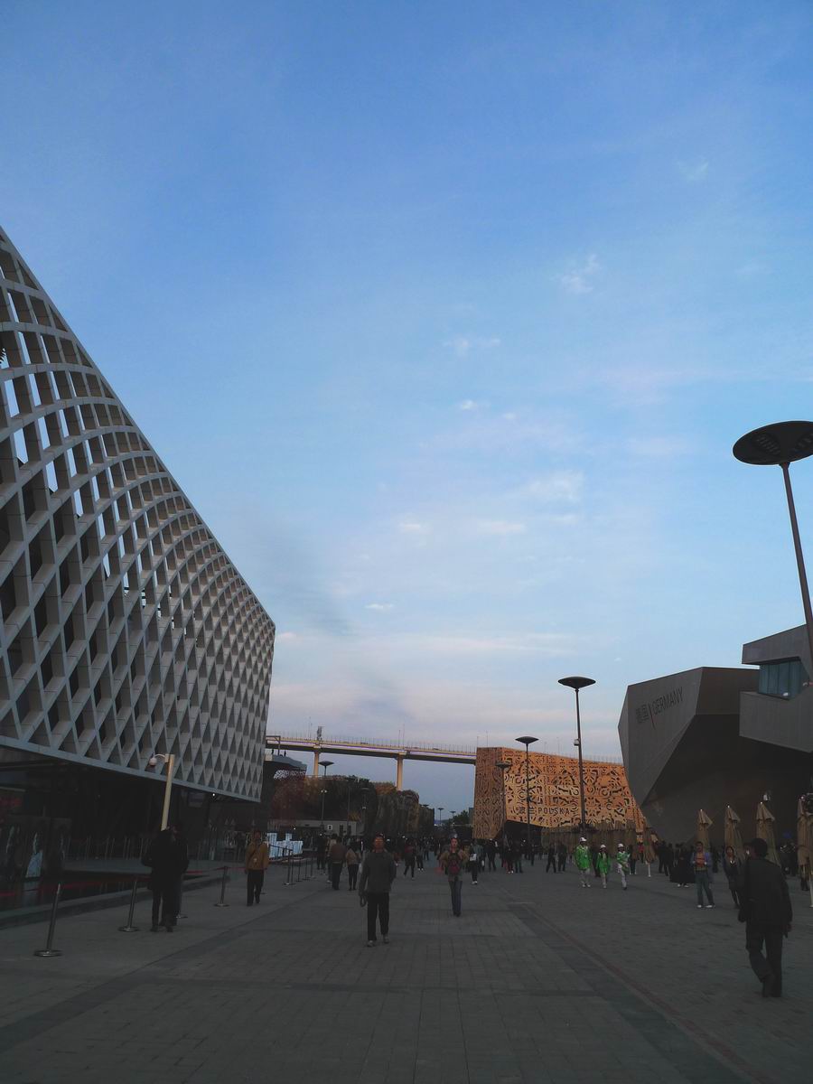 走上高架路(奇怪的名字)一路上是C区亚洲馆的一些场景,沙特馆开放,爆满,形状我没认错的话是个漏斗,以下(我爱飞行机云~)