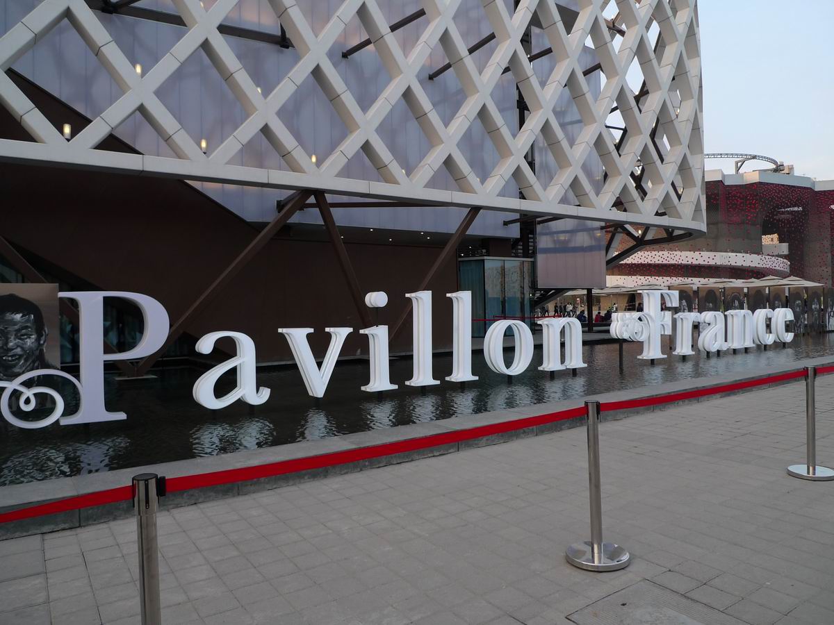前方有画有水的法国馆,我觉得挺艺术挺好看的~